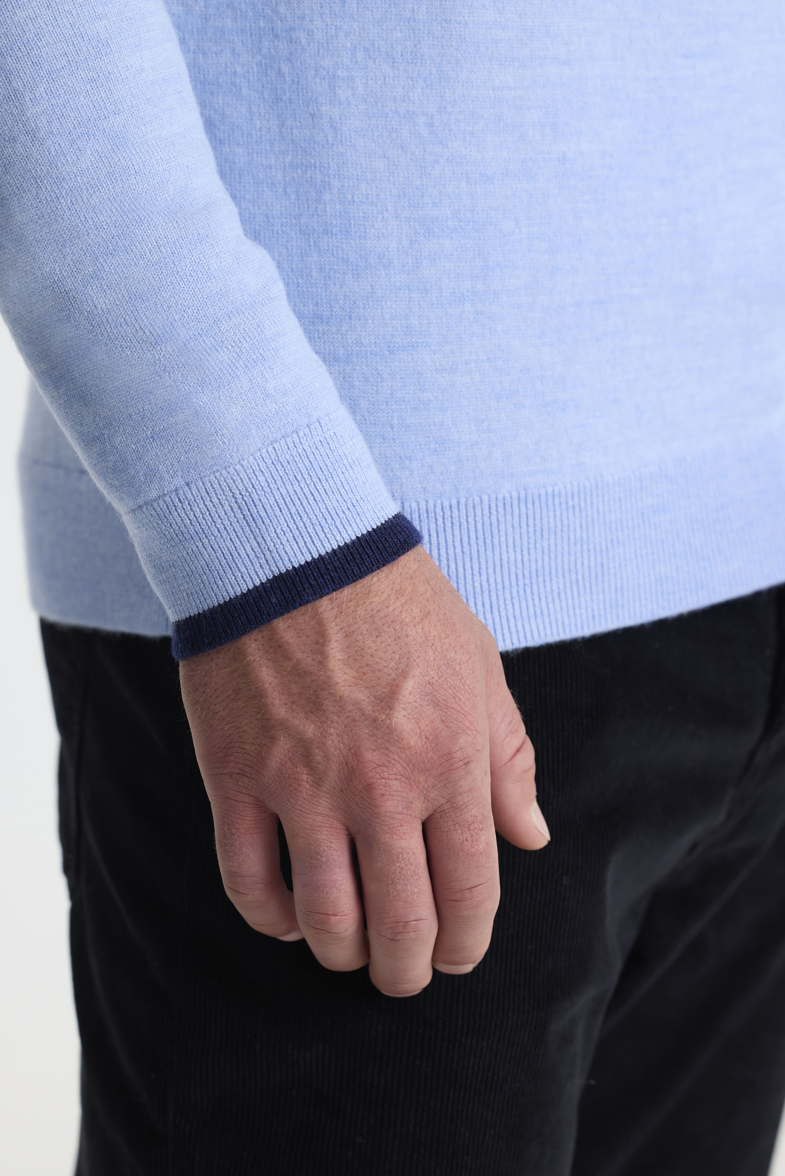The Corbin boasts a traditional crew neck style—with ribbed detailing at the neck, hem and sleeves. It also features an additional contrast color at the sleeves and the internal collar.
