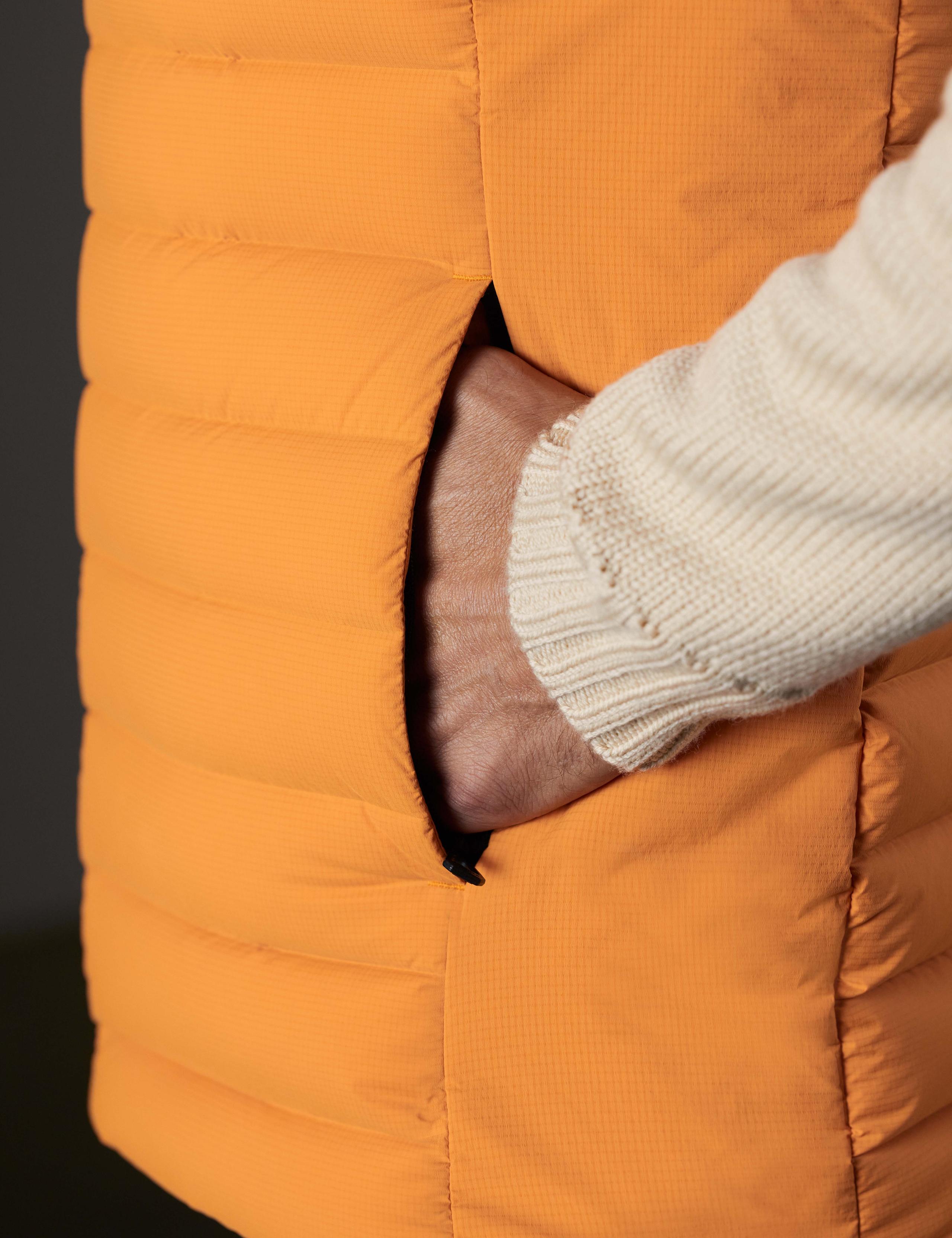 Drawing on the popularity of our Launch Collection, we developed the Launch Vest. Constructed from a pre-baffled stretch ripstop, the lightweight Launch Vest is an ideal piece for transitional weather, perfect for layering under a shell. Please note: This vest is slim-fitting.