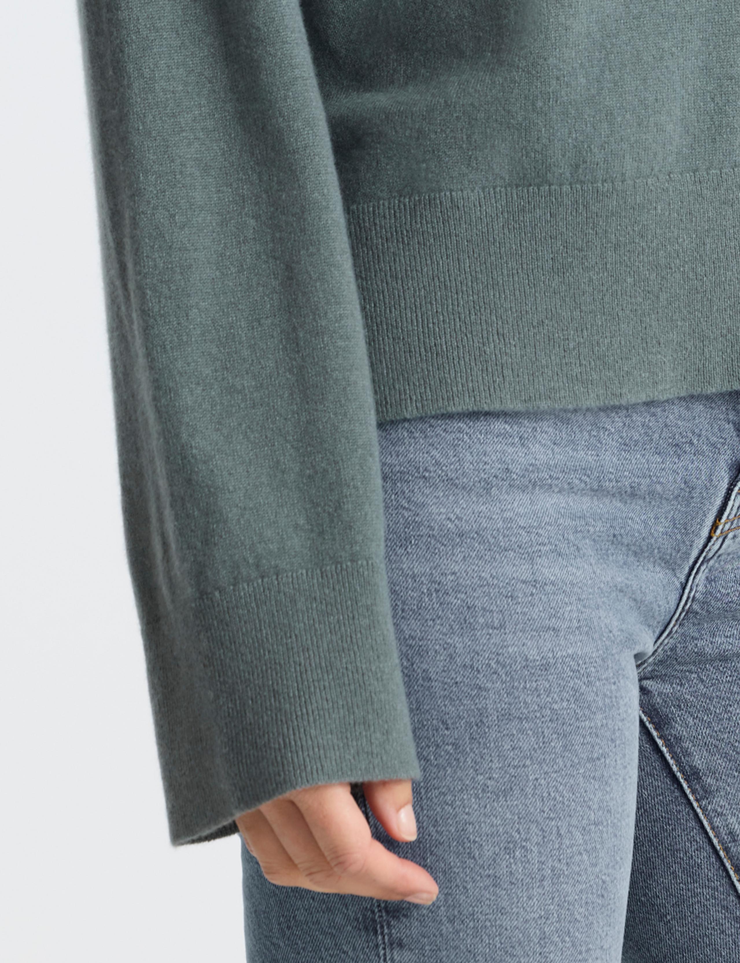 The Leigh Cashmere Crewneck Sweater is a premium winter wardrobe staple characterized by its timeless, minimalist design, and the luxe thermoregulating material used to bring that design to fruition.