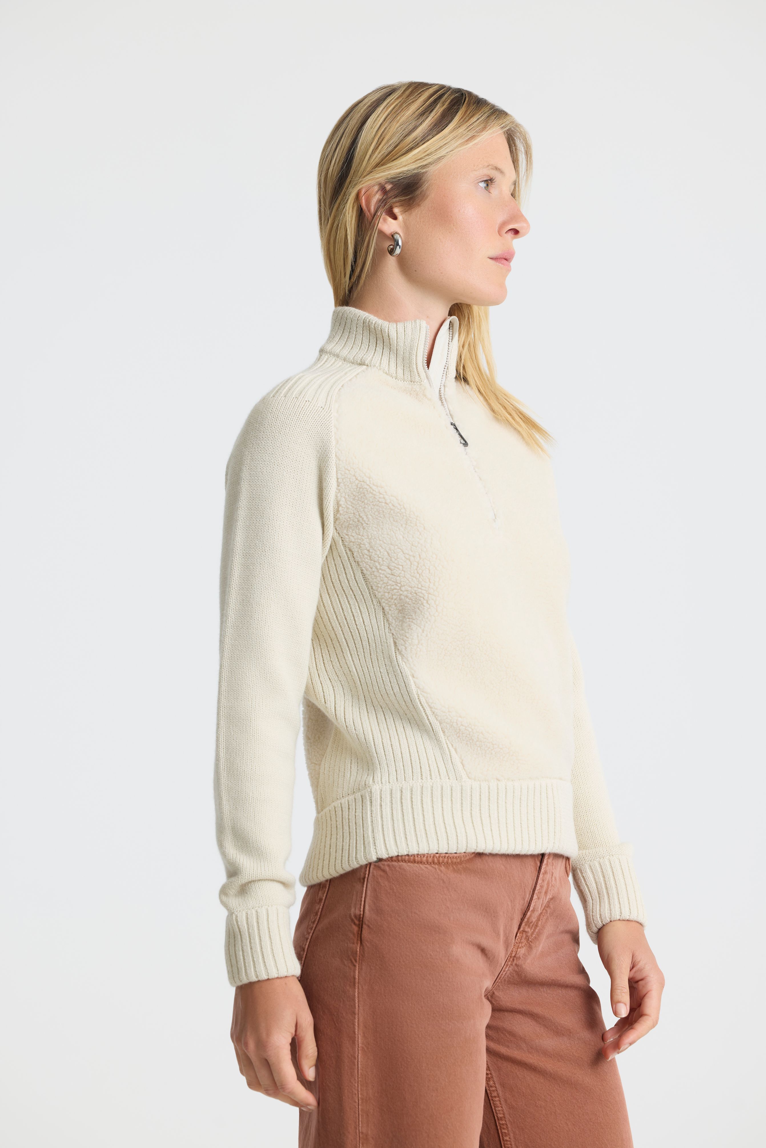 The Malina Half-Zip Sweater is an elegant hybrid sherpa-knit garment that harnesses multiple constructions in order to deliver a versatile layer that’s as stylish as it is functional. Perfect for both use on the slopes and après activities, the Malina Half-Zip is specifically designed for layering beneath a snow jacket, shell, or parka.