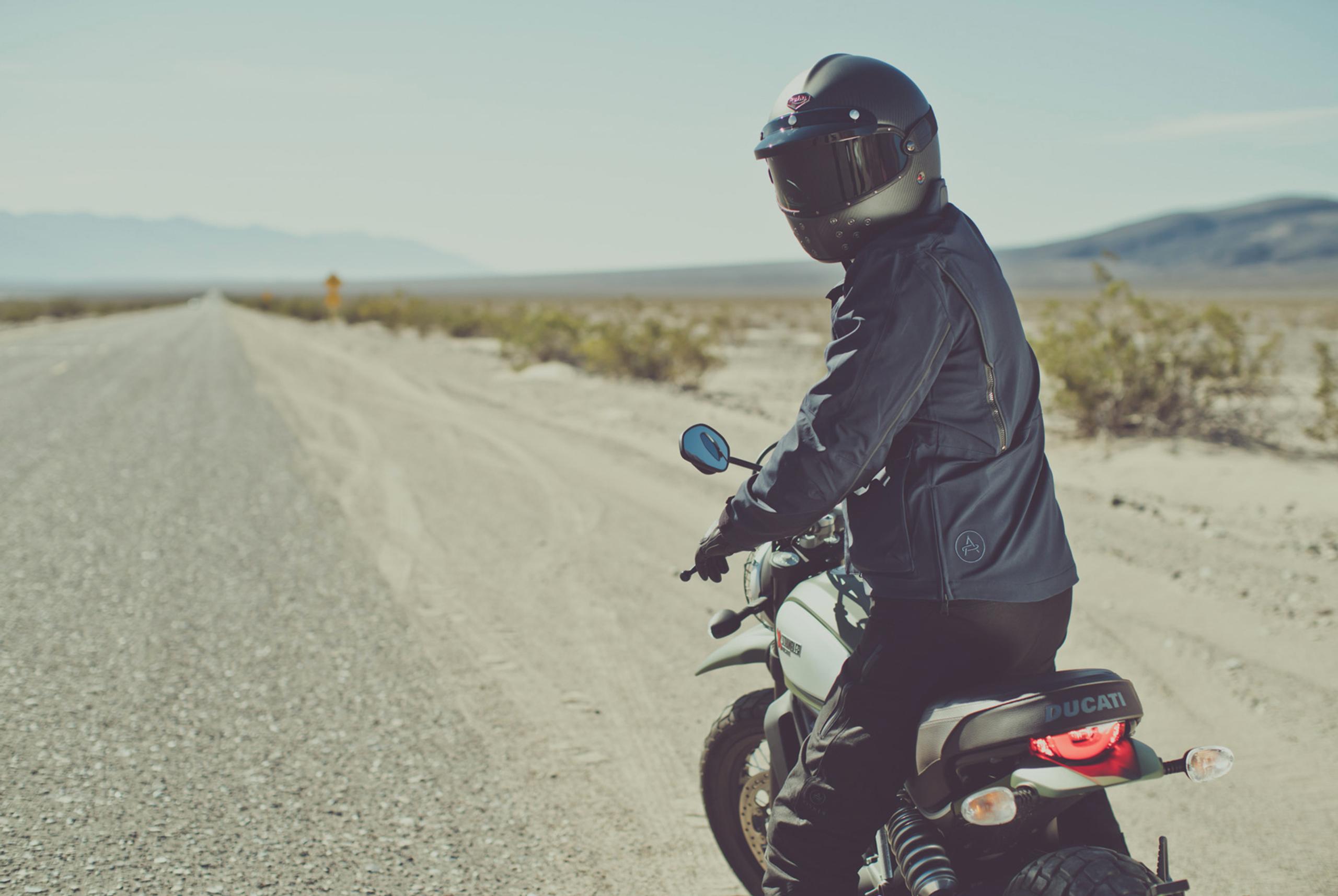 To field test our latest motorcycle collection, we headed to the desert roads of Joshua Tree, gathering a group of friends and moto enthusiasts to wear some of our new styles in the elements.