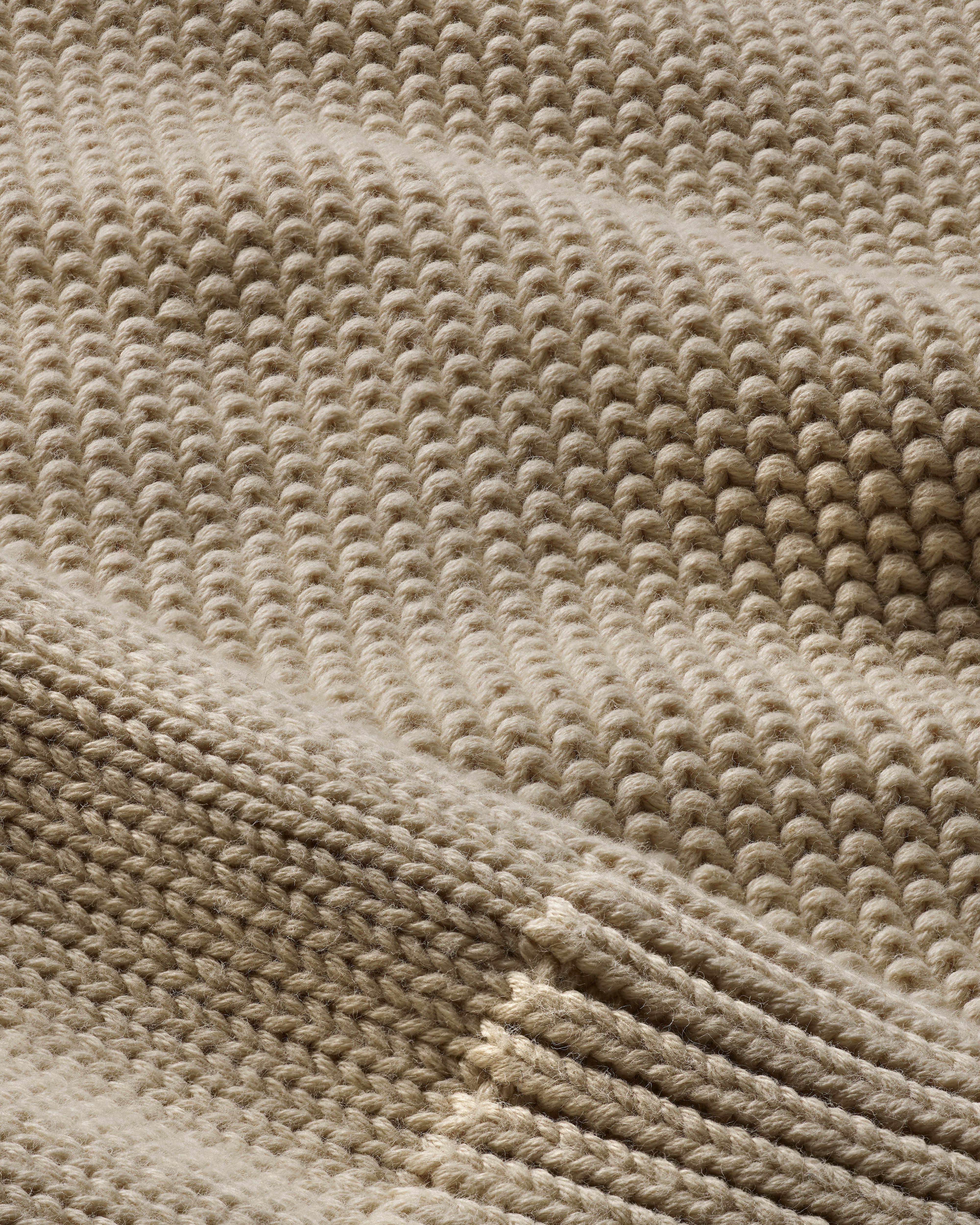 The Oliver Sweater is constructed with a popcorn stitch and a jersey stitch at the sleeves. Featuring a signature rib knit collar and additional ribbing along the sleeves and hem, the sweater is designed for ultimate protection in various conditions.
