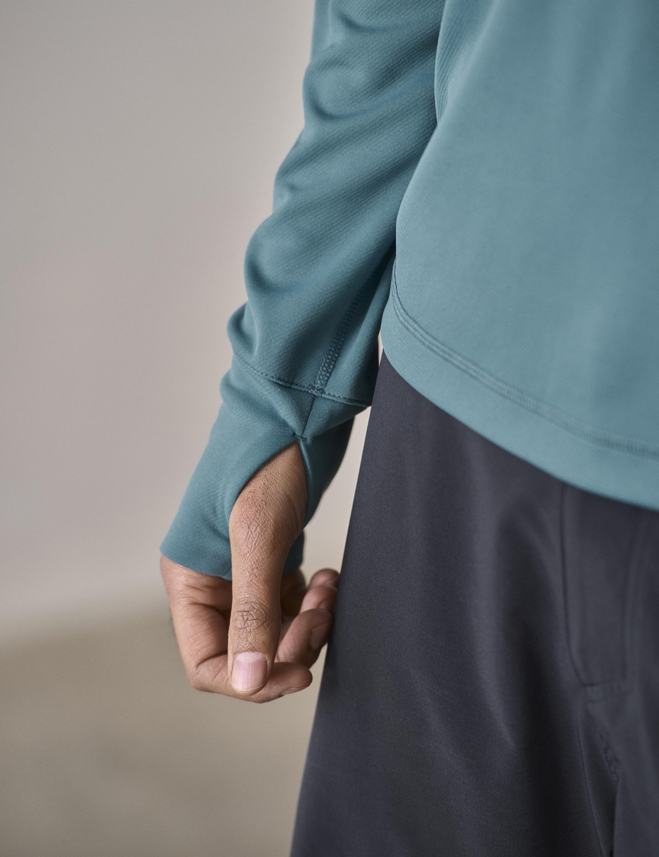Furthering its conduciveness to layering are the Pacific Crewneck’s bartack-reinforced, on-seam thumbhole openings.