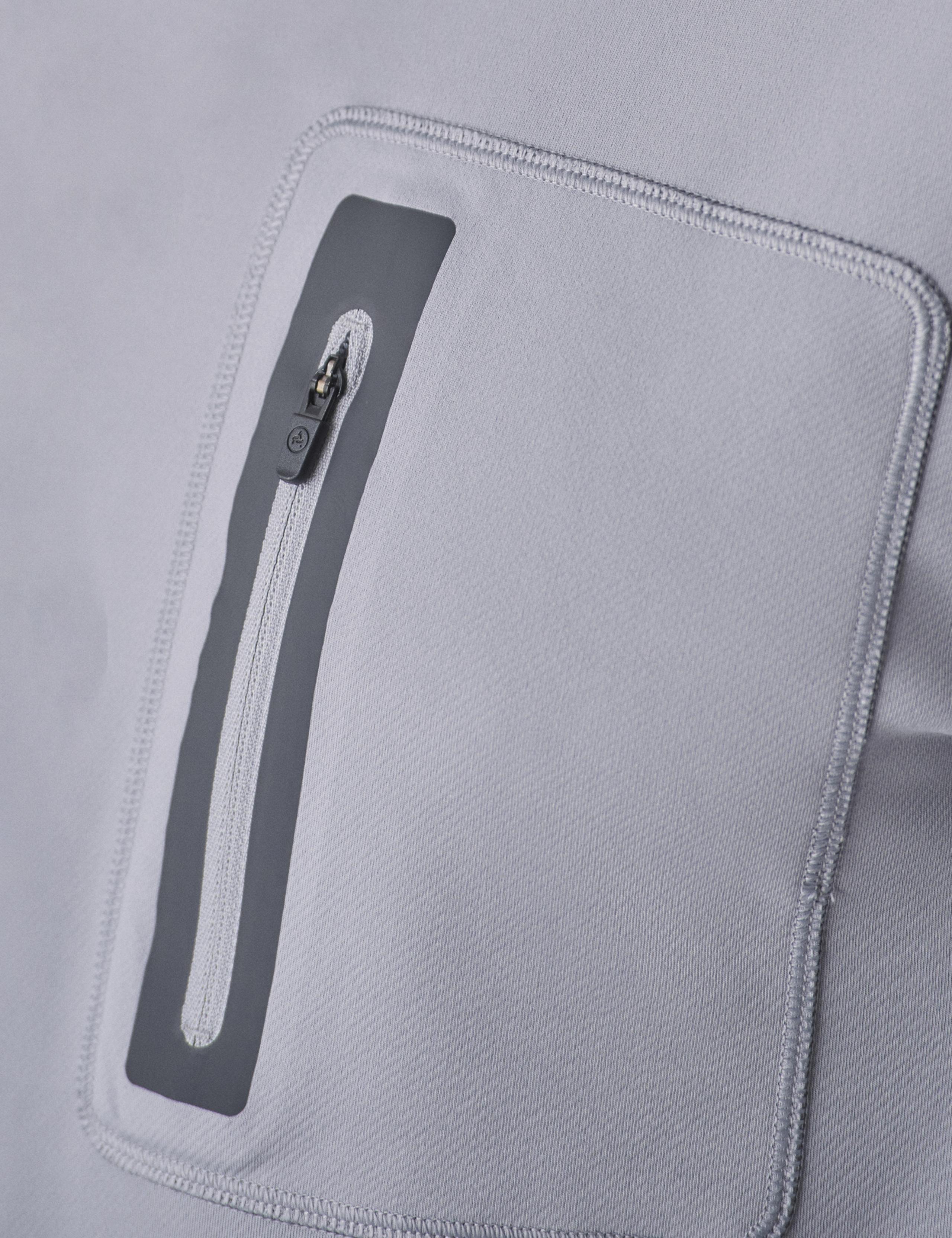 The fabric used in this garment wicks moisture away from the skin, helping to regulate temperature and keep you dry.