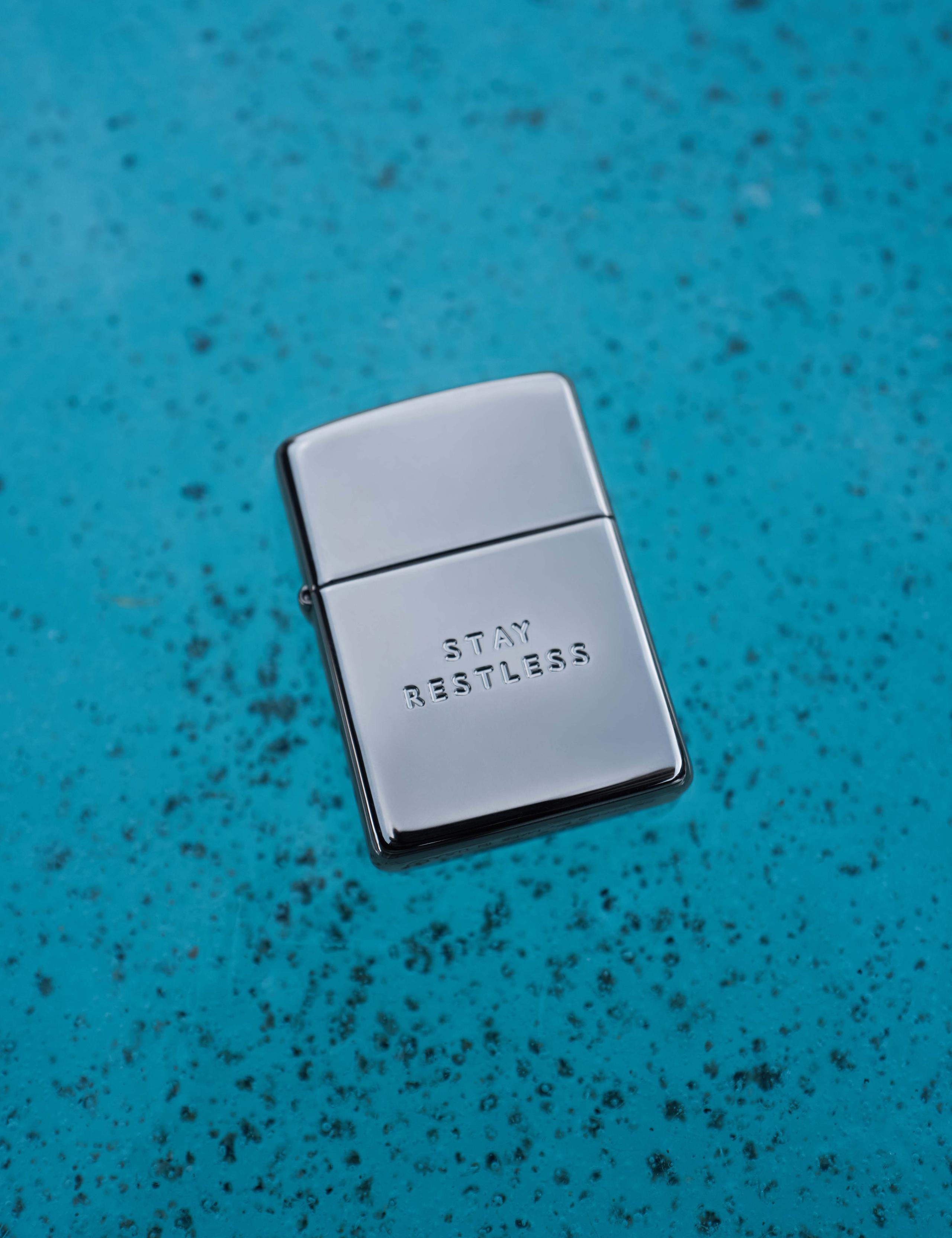 Like all Zippos, our collab promises that strong winds won’t harsh your spark. We embellish the iconic piece of Americana with crossed flags and an undying mantra: STAY RESTLESS.