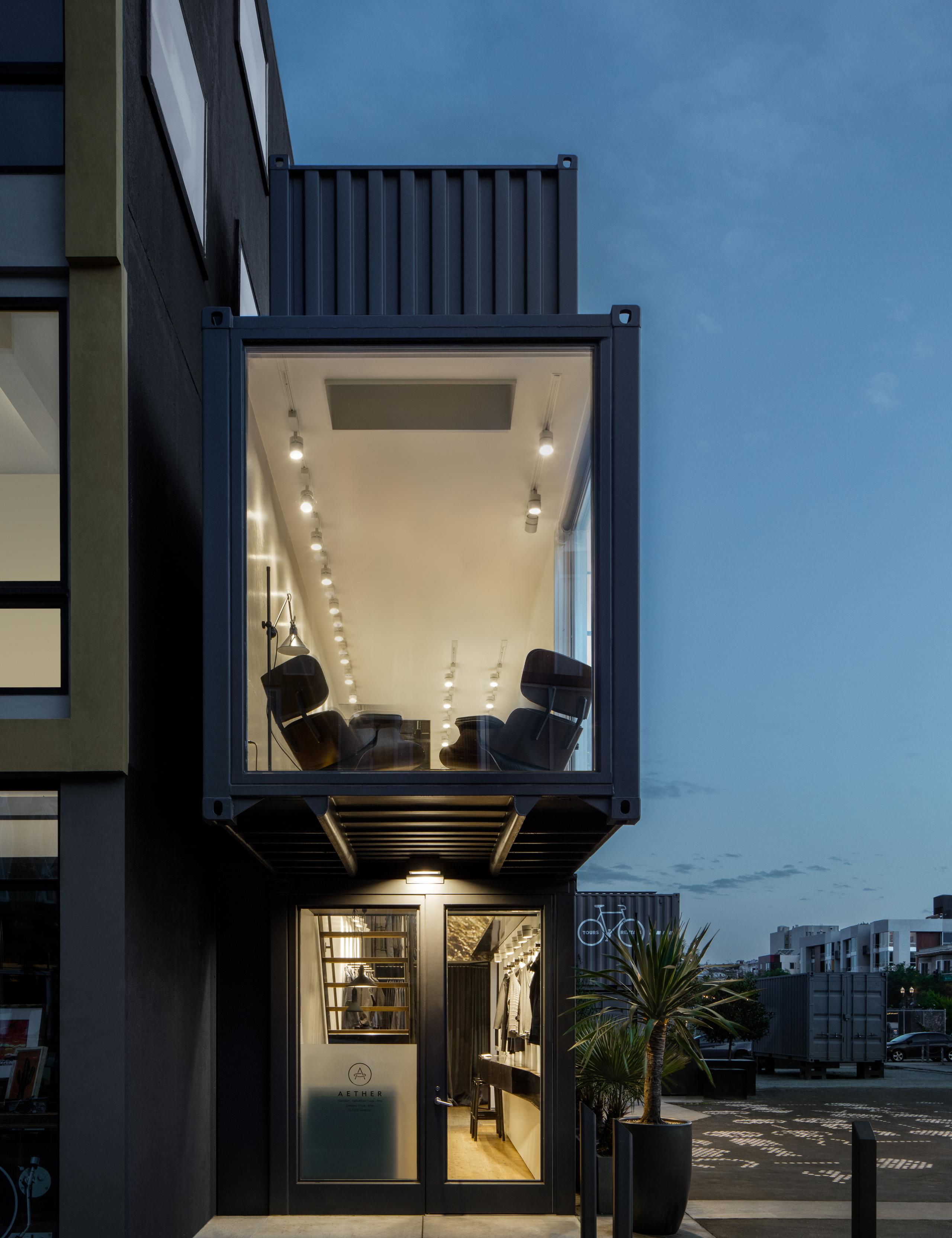 Our original standalone store—located at The Proxy in Hayes Valley, San Francisco—AETHERsf is a concept space constructed from three 8′ x 9.6′ x 40′-foot shipping containers stacked on top of each other. The much-written about, critically lauded space features a custom glass-encased cantilevered lounge, reclaimed oak floors, and a belt-driven, “dry cleaner”-style conveyor system.