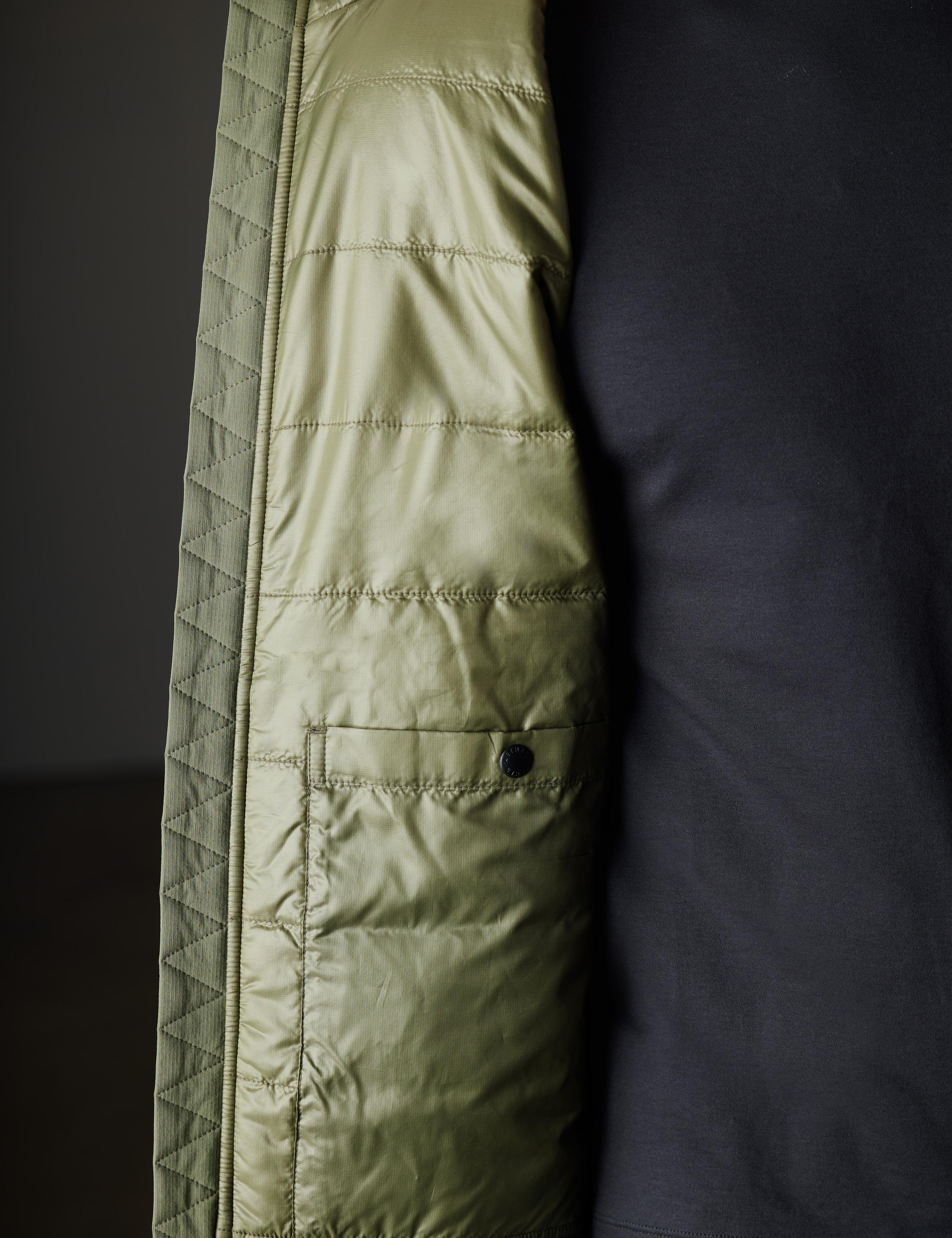 We took our popular Eco Space Hoodie and reimagined it as a technical jacket, adding a tough, recycled nylon exterior fabric that resists snags and is easy to clean, giving it functional water-repellency to boot. We also filled it with PrimaLoft® Gold Bio insulation for innovative warmth that’s also low-impact. Pound for pound, this jacket is the perfect travel companion, capable of tackling multiple climates and conditions. Please note: Built with room for layering. For a classic, tailored AETHER fit, we recommend sizing down.