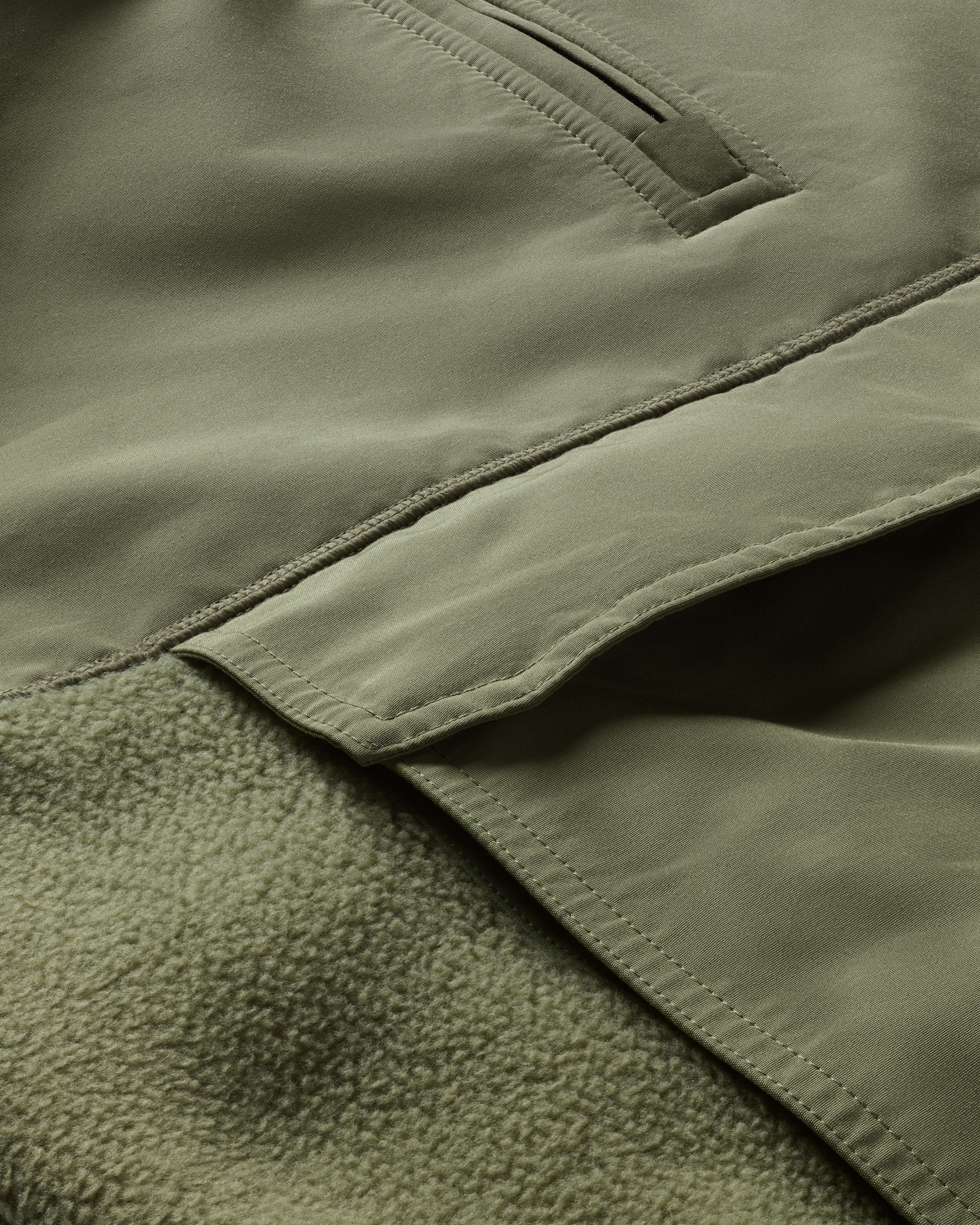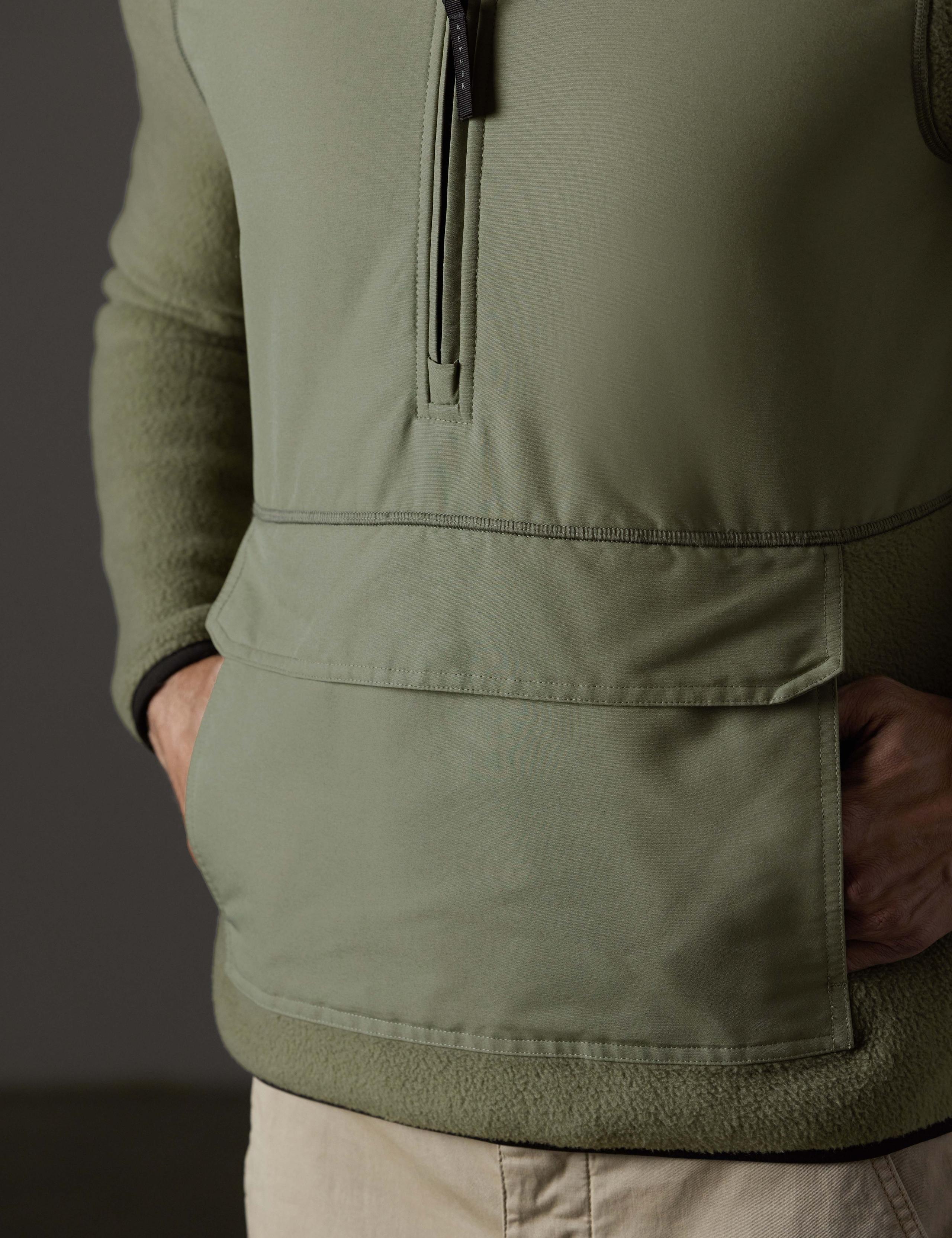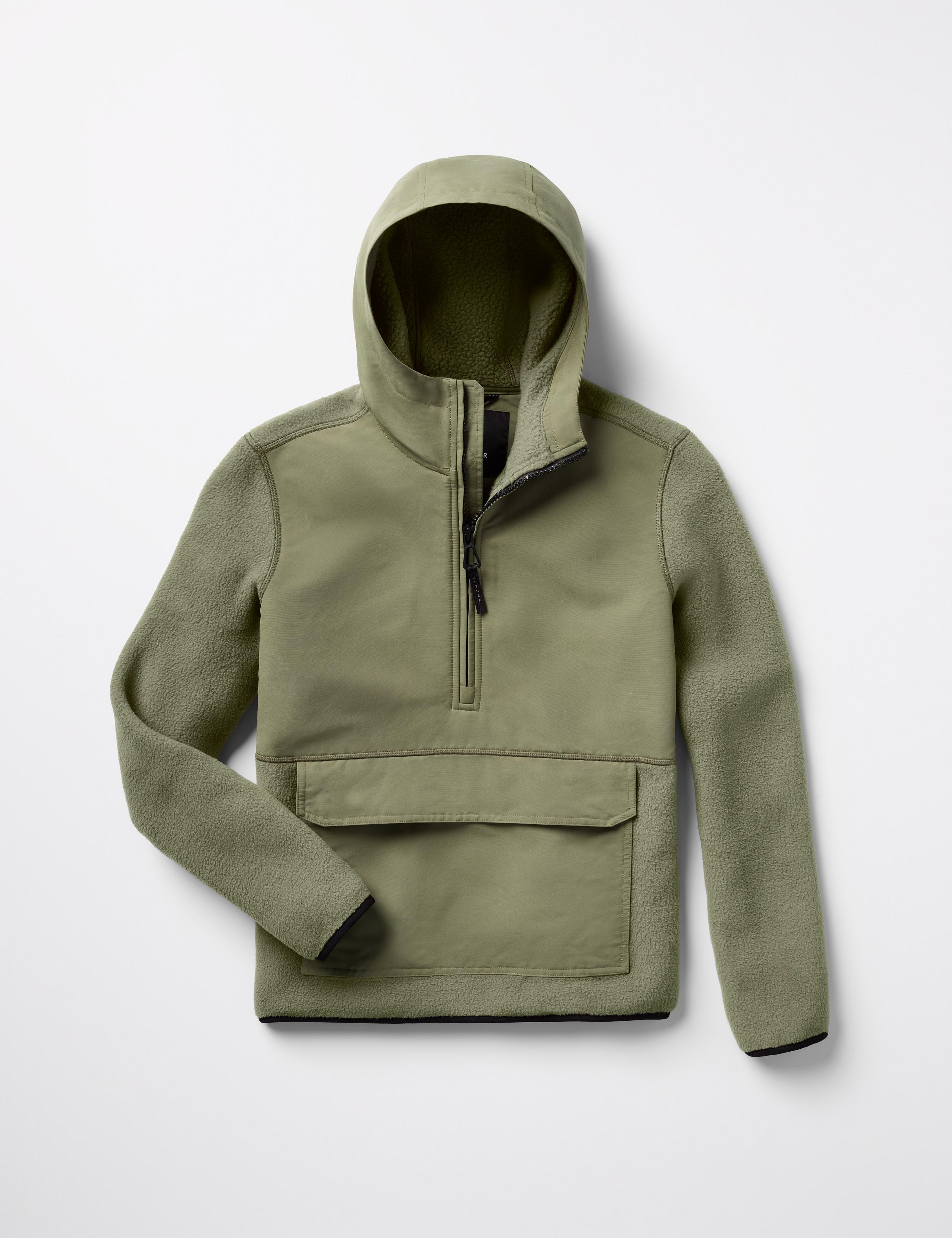 Our Walsh Hooded Anorak is made from Polartec® Thermal Pro® fleece sherpa fabric, which is 100% recycled and delivers all the warmth and comfort of a classic fleece, but is ultra-durable, lightweight and fast-drying. The fabric is OEKO-TEX® and bluesign® certified, meaning it contains no harmful substances and was made in low emission, low pollution facilities.