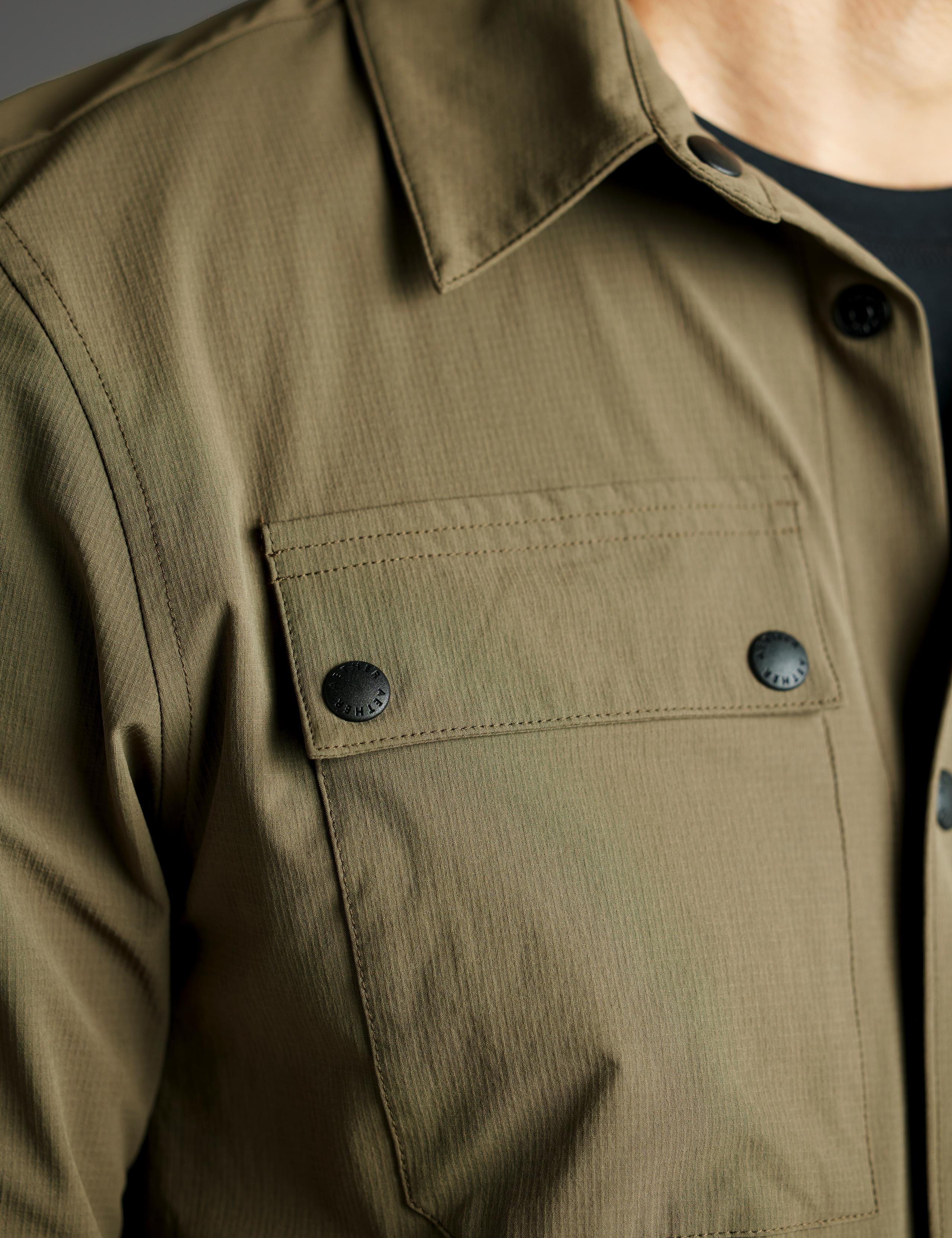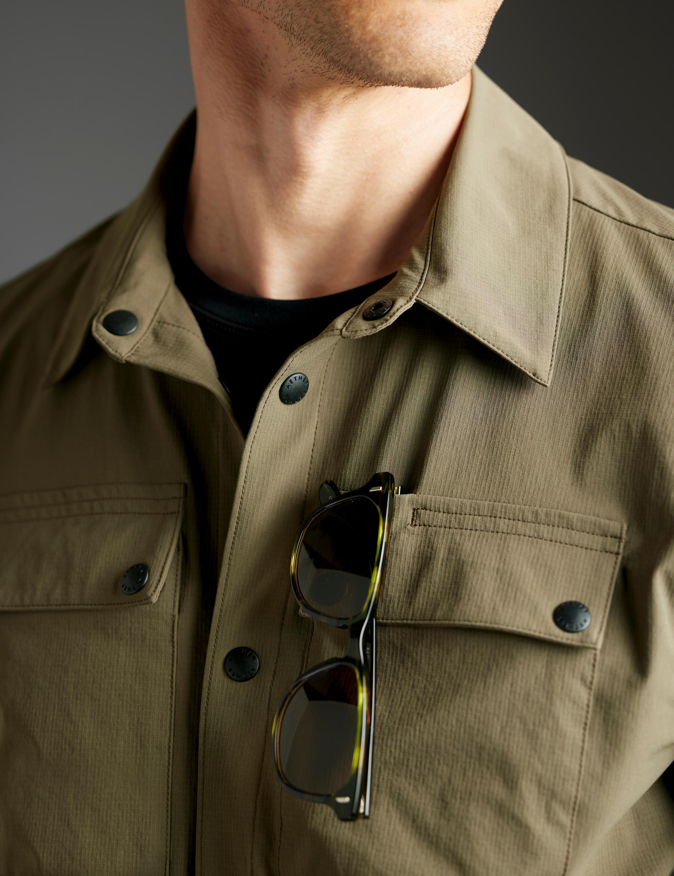 Crafted from PFAS-free DWR treated fabric for water repellency, the Wonder Button-Down is a lightweight, technical piece with added stretch for various adventures. Its mesh lining at the inner back yoke back aids in the breathability of the garment.